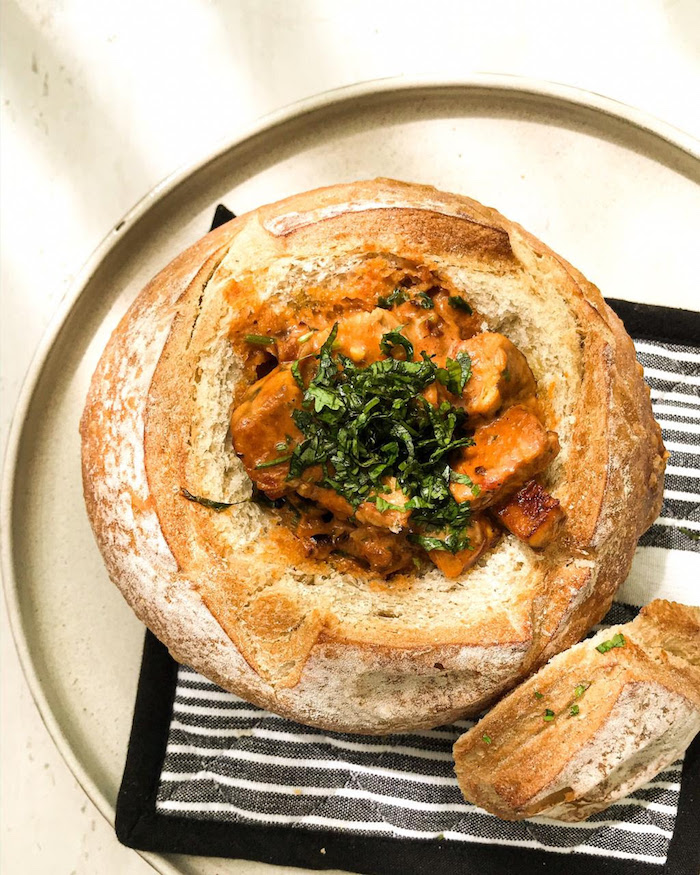 Tire o miolo do pão e o recheie. Sirva bem quentinho.