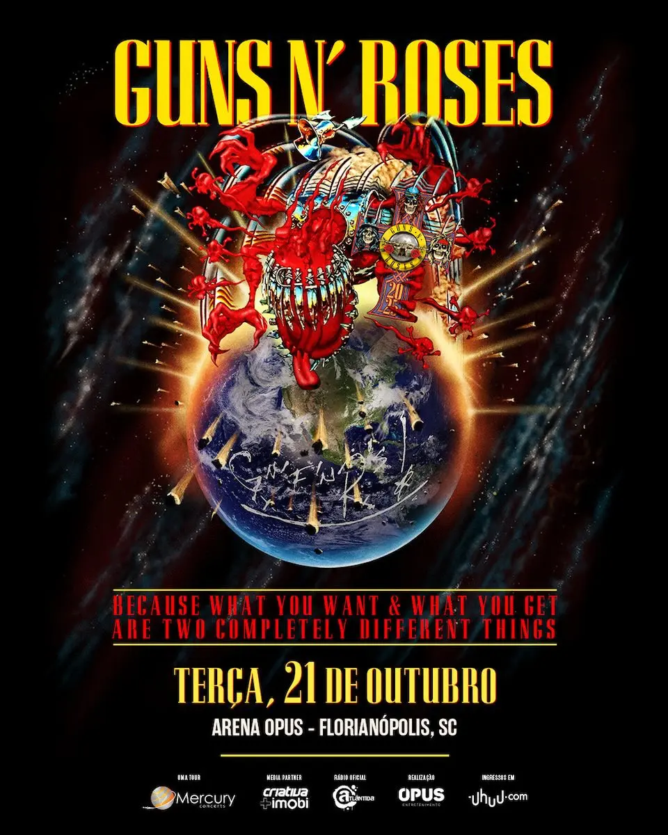 O público catarinense será o primeiro a testemunhar o início da passagem brasileira da turnê “Because What You Want and What You Get Are Two Completely Different Things”, que traz um repertório repleto de clássicos e surpresas como “Welcome to the Jungle”, “Sweet Child o’ Mine”, “November Rain”, “Don’t Cry”, “Patience” e “Paradise City”, entre outras.
