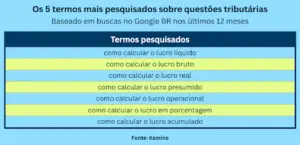 Com a proximidade do encerramento do ano fiscal, cresce o interesse de empresas e autônomos em calcular lucro e revisar o desempenho financeiro. Um levantamento da Kamino, software de gestão financeira para médias empresas, realizado entre outubro de 2023 e outubro de 2024, com dados do Google Search Console, registrou 107.320 buscas pelo termo “como calcular lucro”.