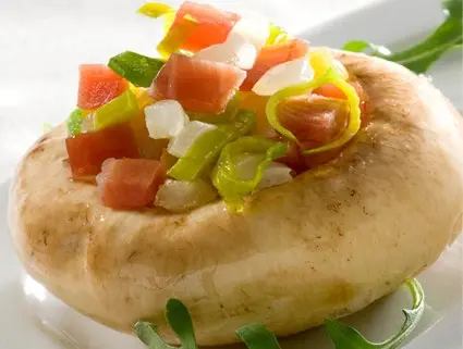 Retirar os talos dos cogumelos e reservar. Picar os talos e refogar no azeite com alho por 3 minutos. Misturar com ricota, parmesão, salsinha, sal e pimenta. Rechear os cogumelos e levar ao forno a 200°C por 15 a 20 minutos.