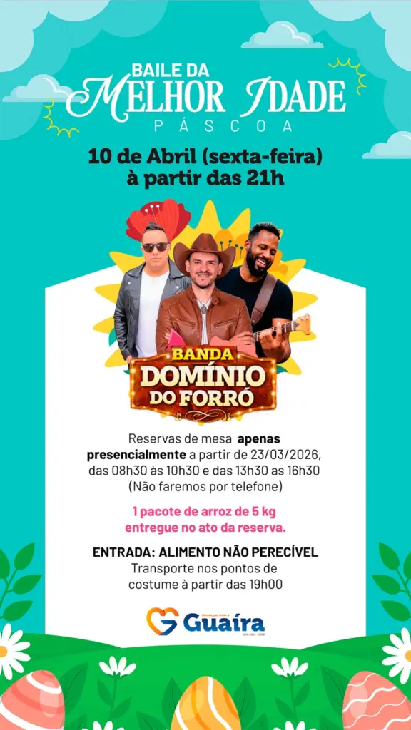 Prepare o sapato de dança e o coração, porque a celebração da Páscoa em Guaíra vai ganhar um ritmo especial. No próximo dia 10 de abril, numa sexta-feira, o Fundo Social de Solidariedade promove o aguardado Baile da Melhor Idade, com a animação garantida pelos acordes vibrantes da “Banda Domínio do Forró”. A festa oficial começa a partir das 21h, mas o clima de solidariedade já dá o tom muito antes do primeiro arrasta-pé.