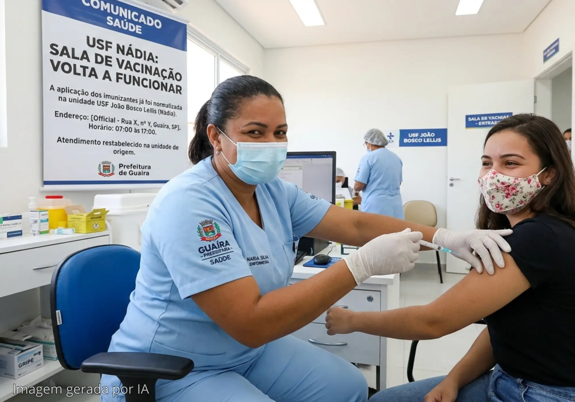 A Diretoria Municipal de Saúde informa que o problema técnico na USF João Bosco Lellis (Nádia) foi sanado. Com a regularização, a sala de vacinação retomou suas atividades na própria unidade.