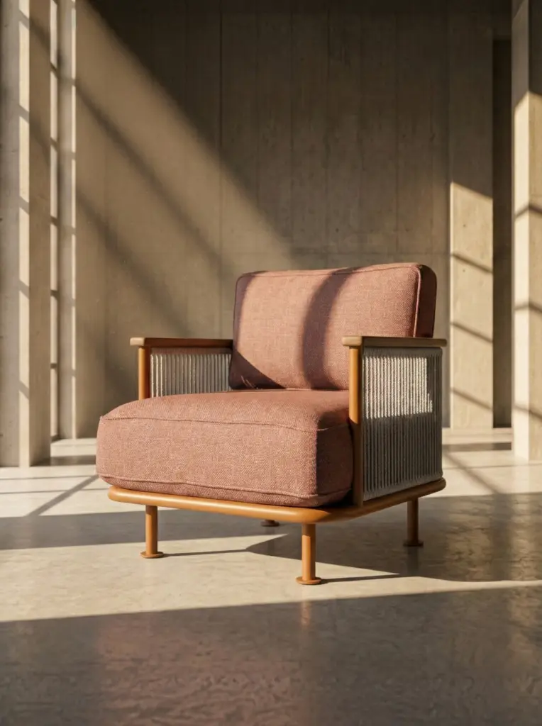 Essa proposta se reflete em diferentes soluções de mobiliário. Na coleção Tempo, da Franccino, a madeira é combinada a tecidos em tons terrosos e acabamentos naturais, criando composições mais acolhedoras e equilibradas. As peças valorizam proporções confortáveis e uma estética mais atemporal, alinhada à busca por ambientes voltados à permanência e ao bem-estar.