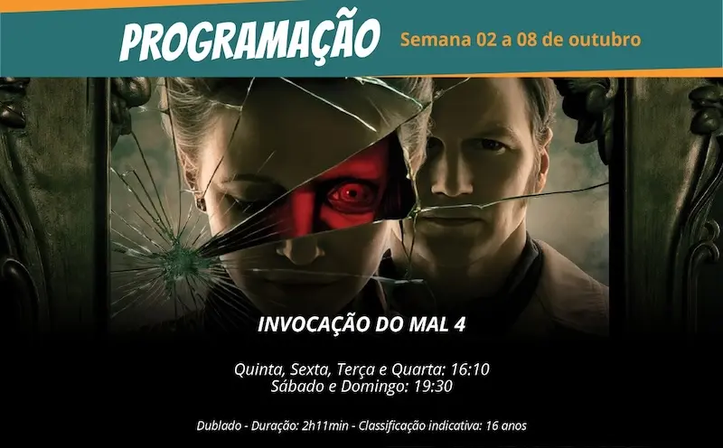 Participe da promoção do GuairaNews e concorra a ingressos gratuitos para o CineEnergia! Semana de 2 a 8 de outubro com Invocação do Mal 4, Demon Slayer e Zoopocalipse.